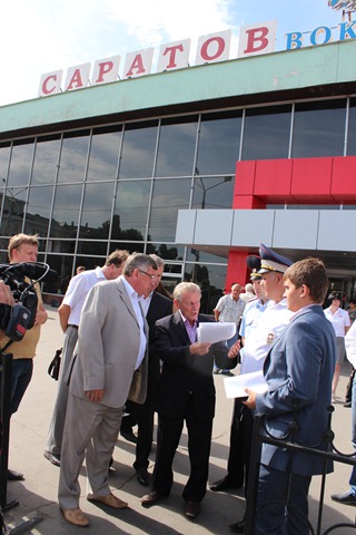 Присутствовавший при разговоре недавно назначенный начальник Саратовского железнодорожного вокзала Вячеслав Маркелов внимательно слушал замечания Александра Ландо и других общественников.