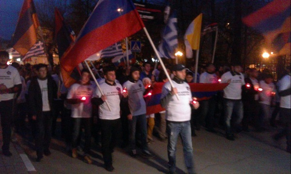 В завершение мероприятия все участники шествия из принесенных лампад выложили на земле кресты и год геноцида армян - 1915.