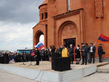 В Саратове около строящейся Армянской церкви Святой Богородицы в районе Саратовского аэропорта состоялся митинг памяти, посвященный столетию геноцида армян в Османской Турции.