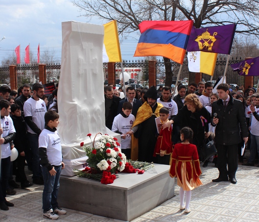 Завершилось мероприятие открытием Хачкара (крестообразной скульптуры) во дворе церкви с возложением цветов к монументу и запуском белых шаров.