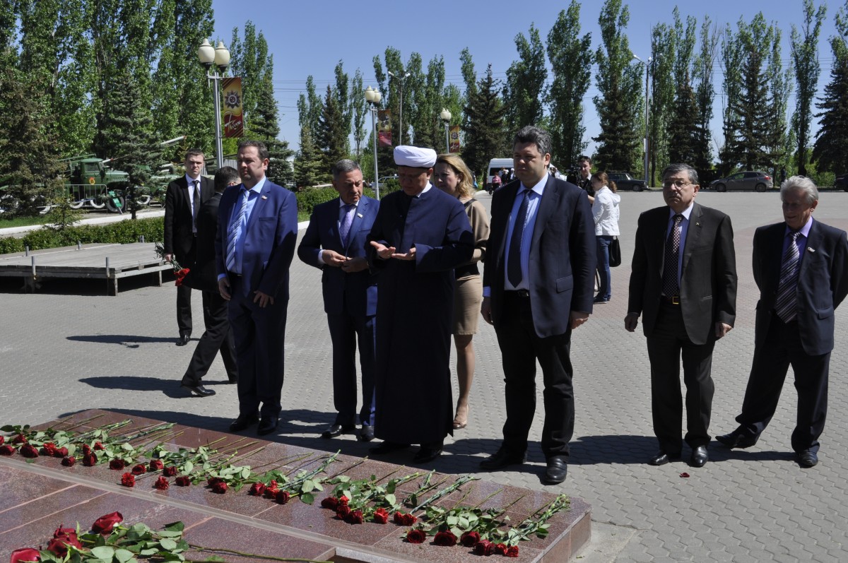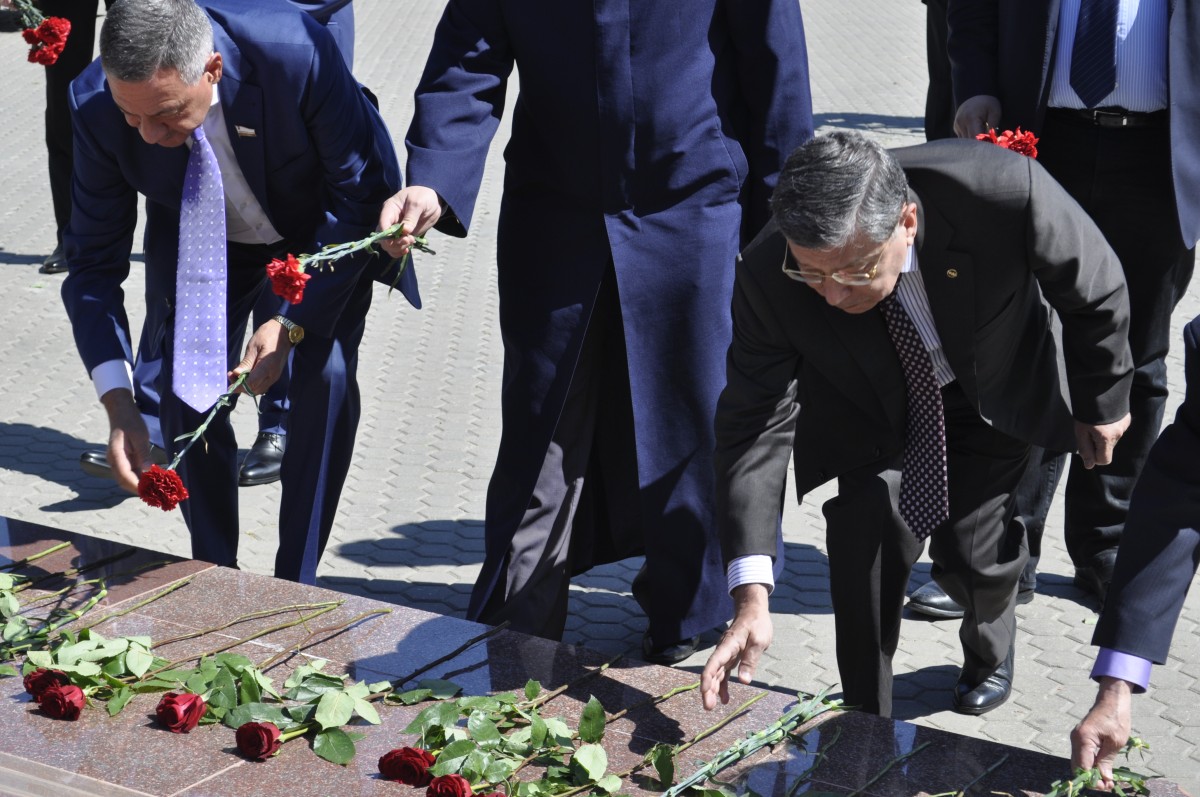Собравшиеся возложили цветы к Вечному огню в Парке Победы на Соколовой горе, посетили музей Боевой славы и музей Трудовой славы, этнографический комплекс "Национальная деревня народов Саратовской области".