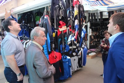 Председатель Общественной палаты области Александр Ландо в сопровождении своих коллег-общественников Юрия Виткина и Евгения Лузановского ознакомился с ситуацией по распространению контрафактной продукции на вещевом рынке «Привокзальный».