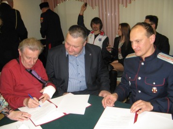 По завершении презентации, которую провел атаман организации, подъесаул Игорь Шайкин, состоялась церемония подписания соглашения регионального отделения общероссийской общественной организации по развитию казачества «Союз Казаков-Воинов России и Зарубежья» с Общественной Палатой Саратовской области, а так же с Саратовским областным отделением Всероссийской общественной организации ветеранов «Боевое братство» и региональным отделением ДОСААФ России по Саратовской области.