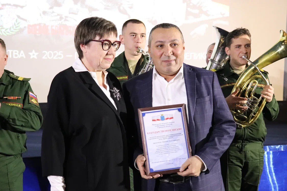 24 декабря 2025 года заместитель Председателя Общественной палаты региона Сергей Авезниязов, члены Общественной палаты Саратовской области Наталья Речман, Александр Дубинин, Мураз Даврешян, Алла Фетисова приняли участие в торжественном мероприятии, посвященном итогам Года защитника Отечества и Года 80-летия Победы в Великой Отечественной войне 1941-1945 годов. Мероприятие состоялось в саратовском кинотеатре «Победа» по инициативе Саратовского областного отделения «БОЕВОГО БРАТСТВА» и министерства внутренней политики и общественных отношений региона. На нем были отмечены заслуги общественных и образовательных учреждений в патриотической работе.