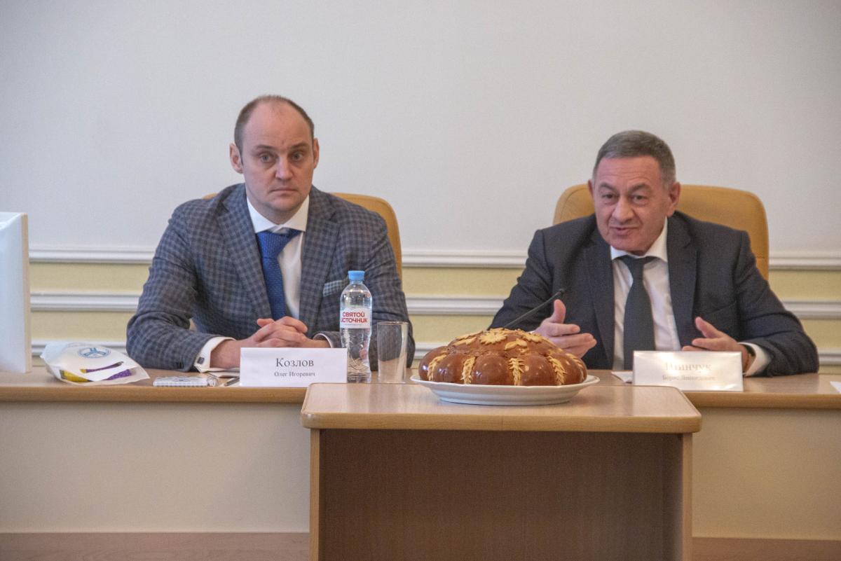 Перед началом круглого стола Борис Шинчук обошел всех в зале и разделил каравай хлеба.